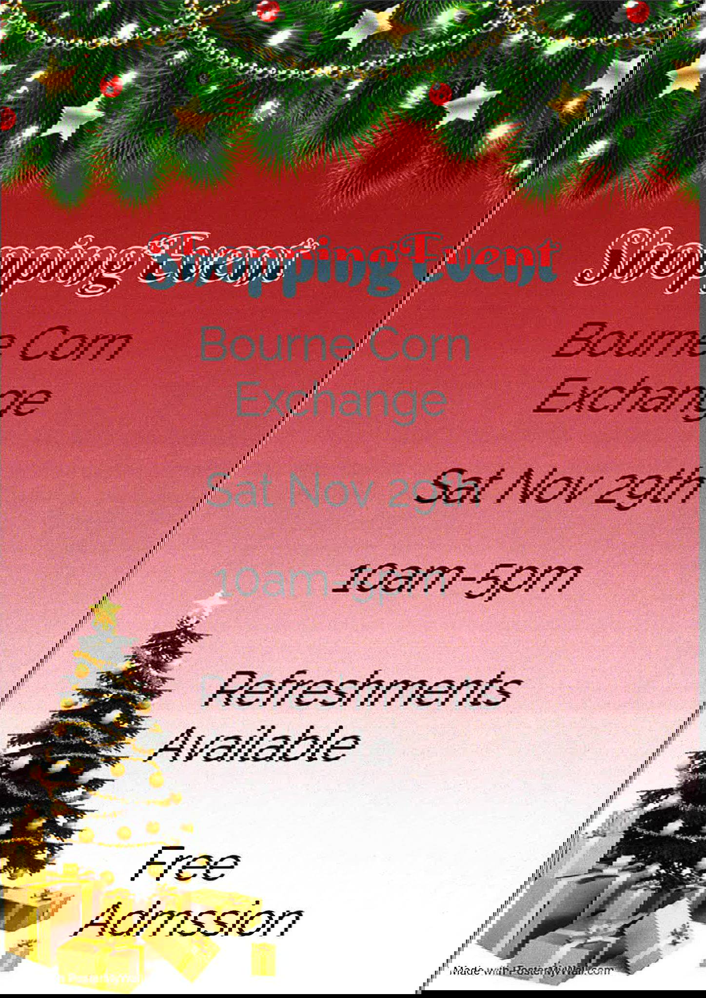 Shopping event at the Bourne Corn Exchange 29th November 10am to 5pm Refreshments available Free admission